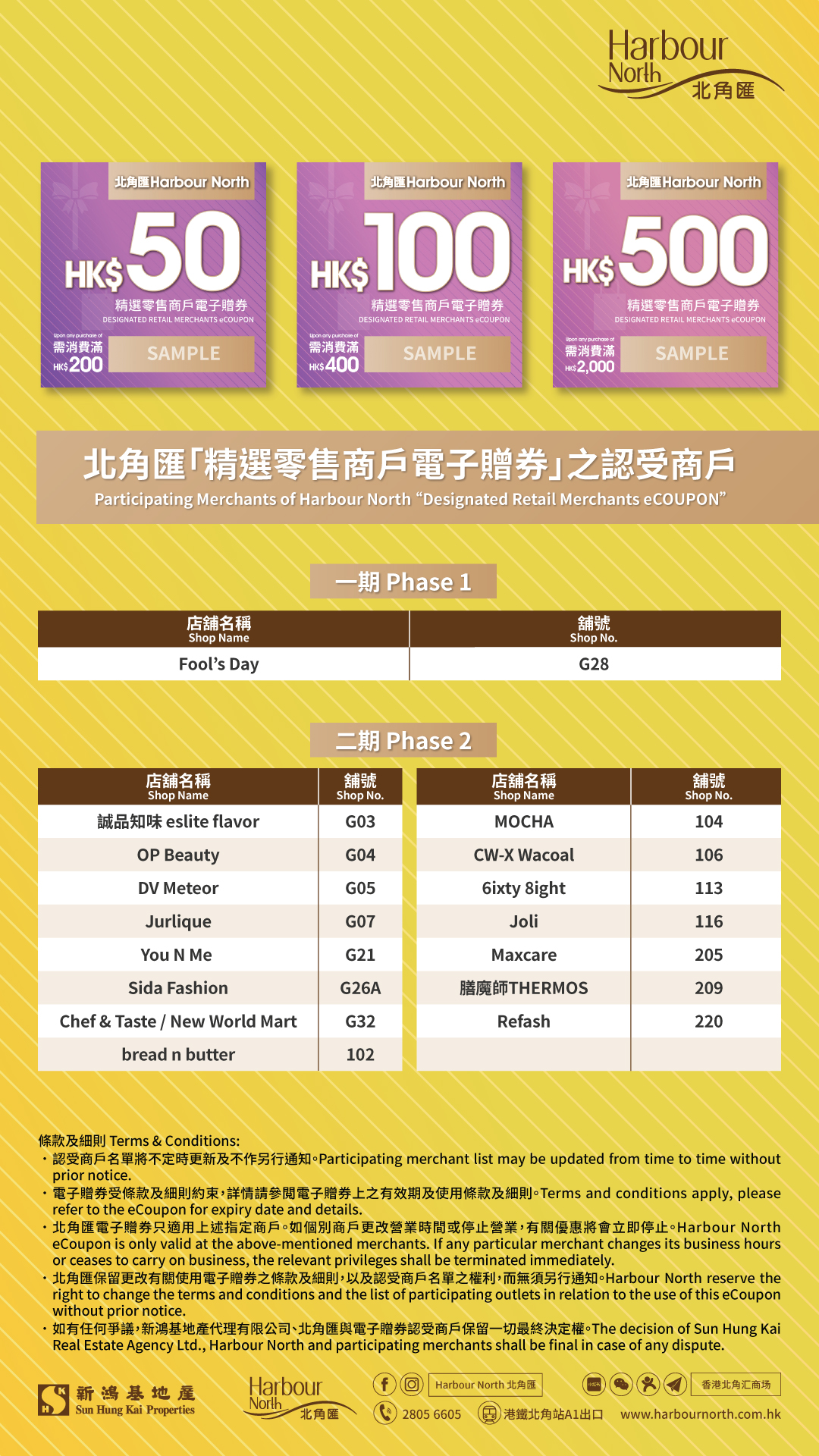 Participating Merchants of Harbour North Designated Retail Merchants eCoupon
